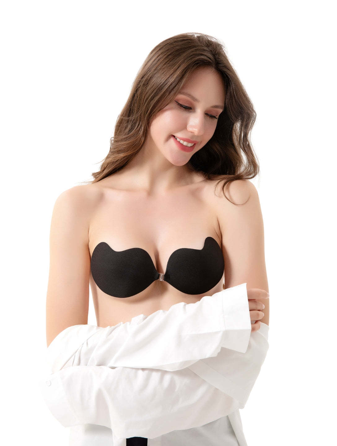 Looking for a lift that feels like nothing? Meet the strapless, seamless silicone bra that boosts and shapes with a natural push-up effect while staying invisible under tricky necklines. The soft, skin-safe adhesive grips comfortably, and the pull-on design with no closures keeps lines smooth and fuss-free. Coverage is minimal for a clean, no-show finish, and the low-compression feel stays comfy all day.
