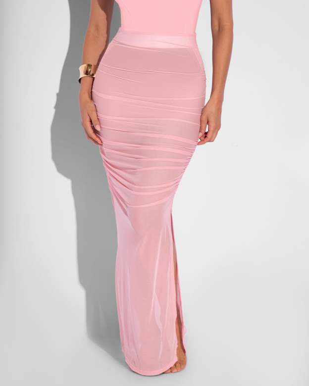 Ruched Sheer Maxi Skirty - Flamingo Pink